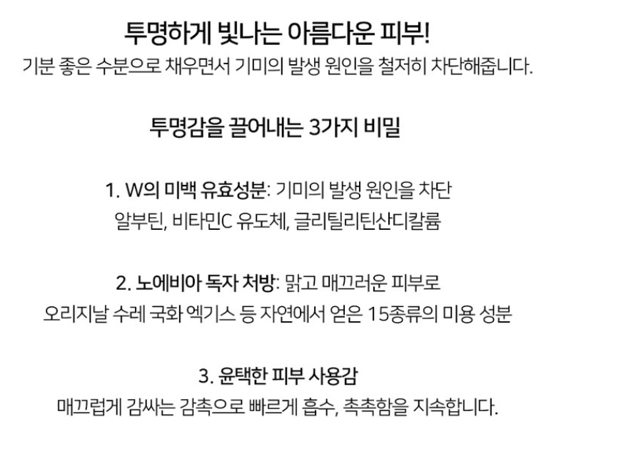 - 아침, 저녁 스킨로션(스킨)으로 피부를 정돈한 후 적량(2~3펌프)을